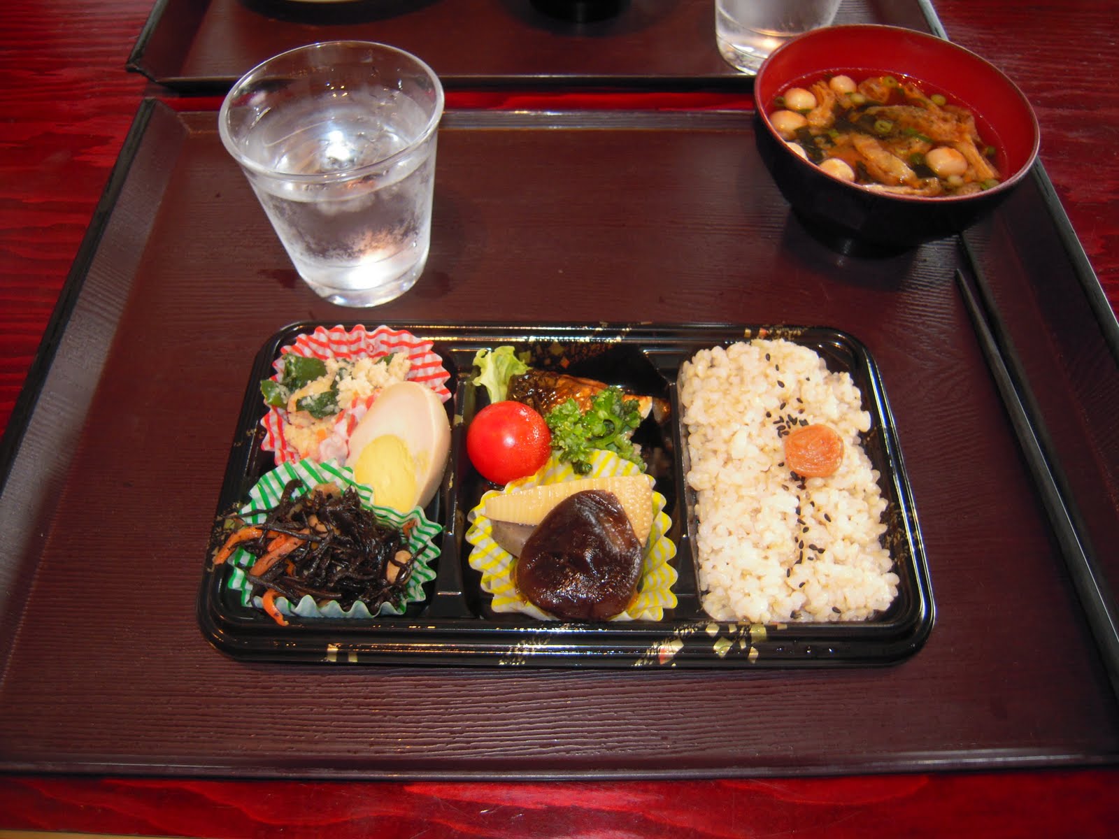 私はヘルシー弁当と味噌汁。ご飯は玄米。